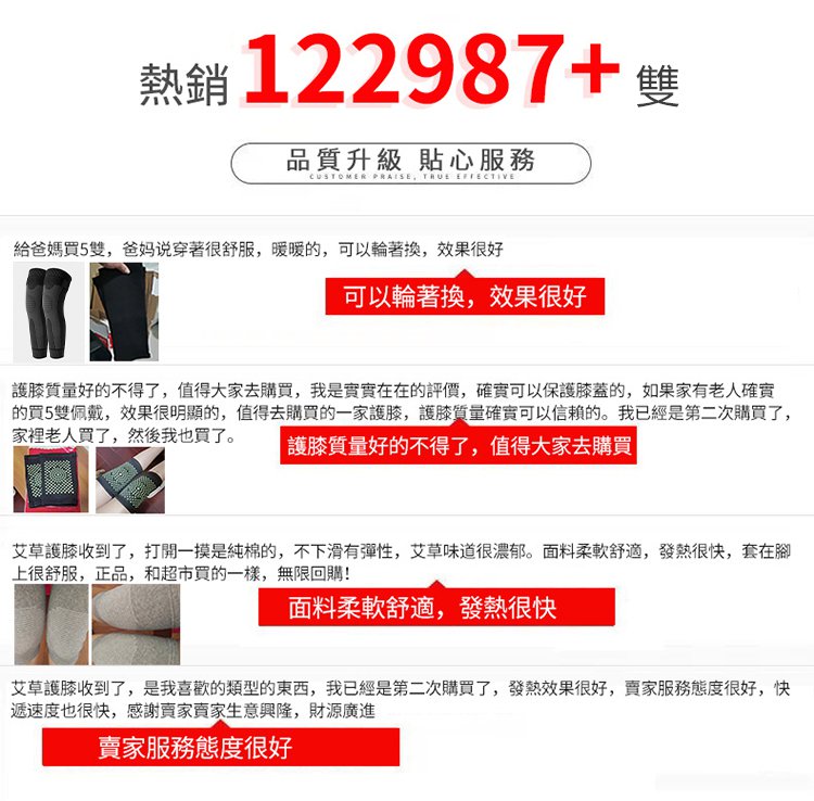 4分鐘前爆款艾草護膝 真正加倍保暖護膝,四季通用,老寒腿、關節涼、膝部不適專用! - 買三送三【6雙】NT$1098 均價183/入,免運